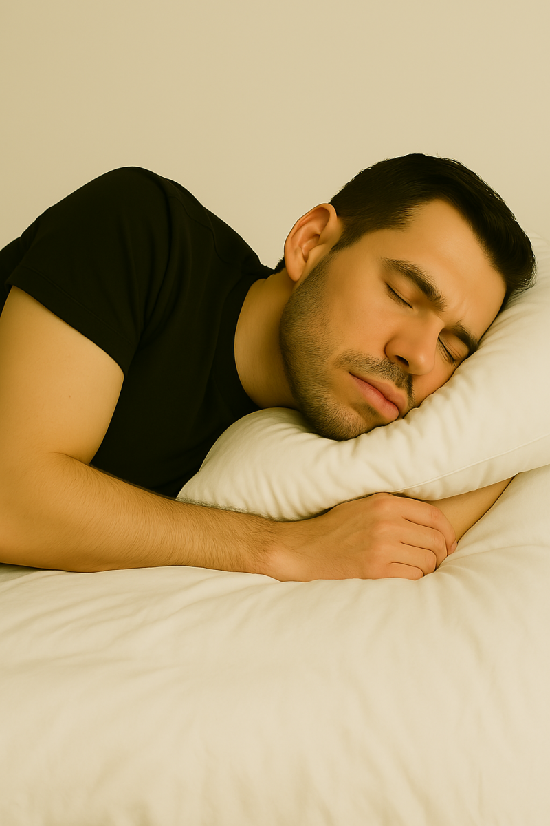 Det er gunstigst å sove på venstre side ettersom det minsker risiko for sure oppstøt (reflux). Sover du på høyre side kan magesyre trenge opp i spiserøret.
